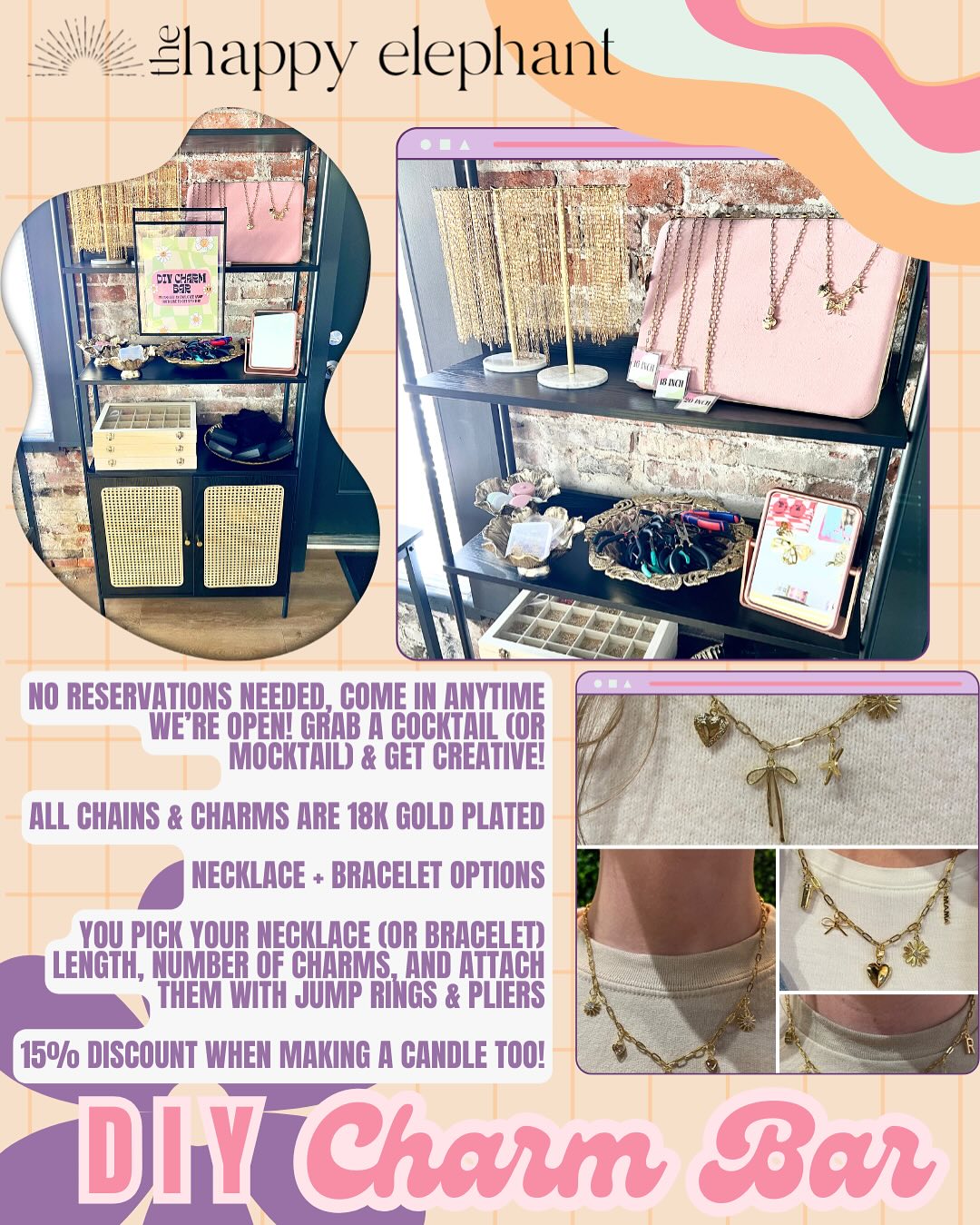 ✨a DIY charm bar available anytime we're open - make your own 18k gold plated charm necklaces and bracelets!