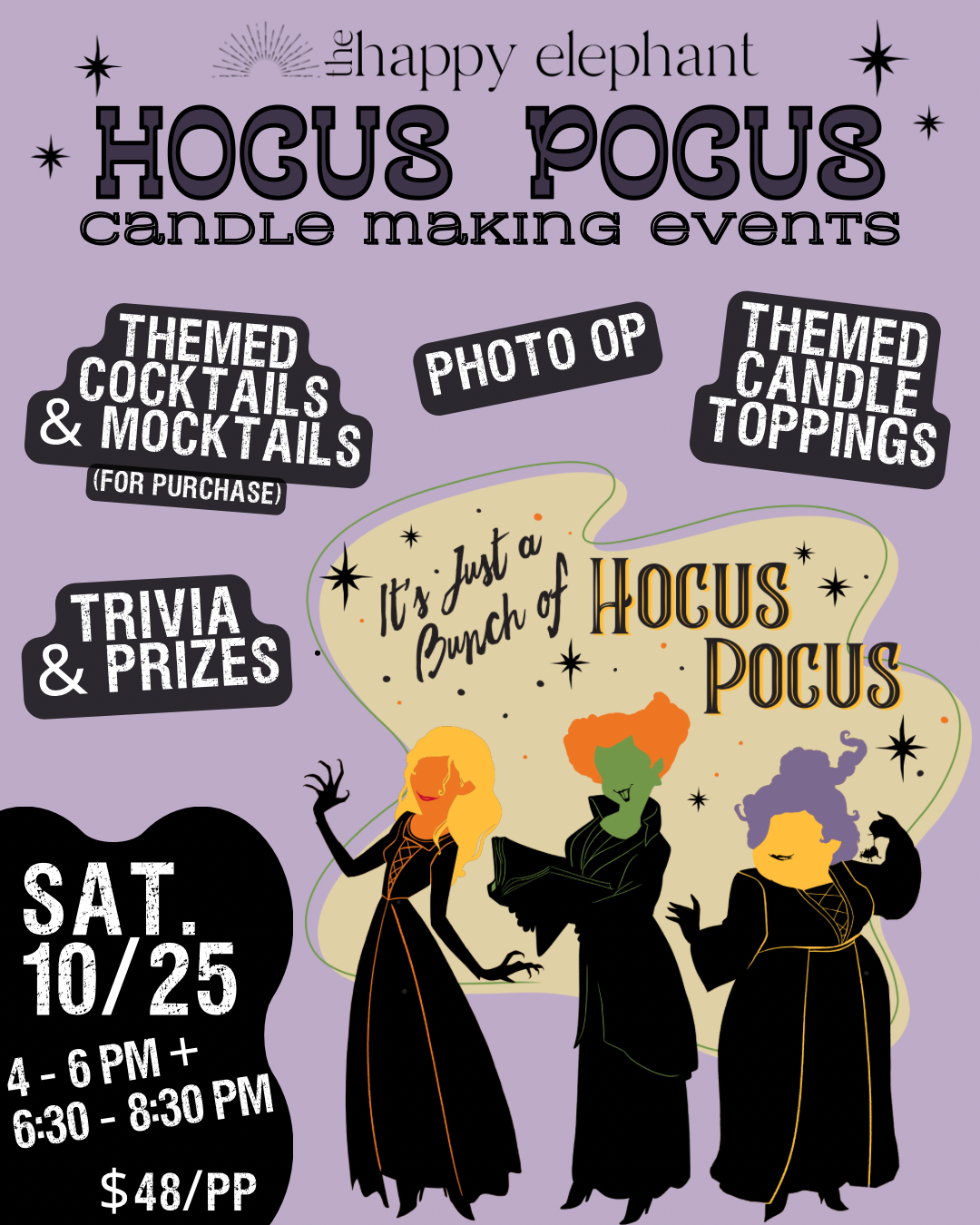 Attention witches! Although fall & Halloween themed candle making continues through October (every Wednesday - Sunday!) we had to host one more extra ✨special & spooky✨ event! The Sanderson sisters cordially invite you to a 〰️h o c u s p o c u s〰️ themed candle making event!
